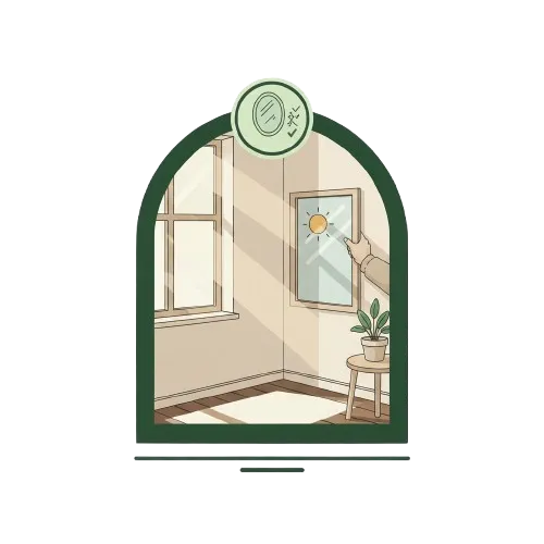 For optimal light redirection, a mirror positioned at a 45-degree angle relative to incoming sunlight can effectively redirect that light into areas that would otherwise remain dim. The angle of incidence equals the angle of reflection, creating predictable light paths.